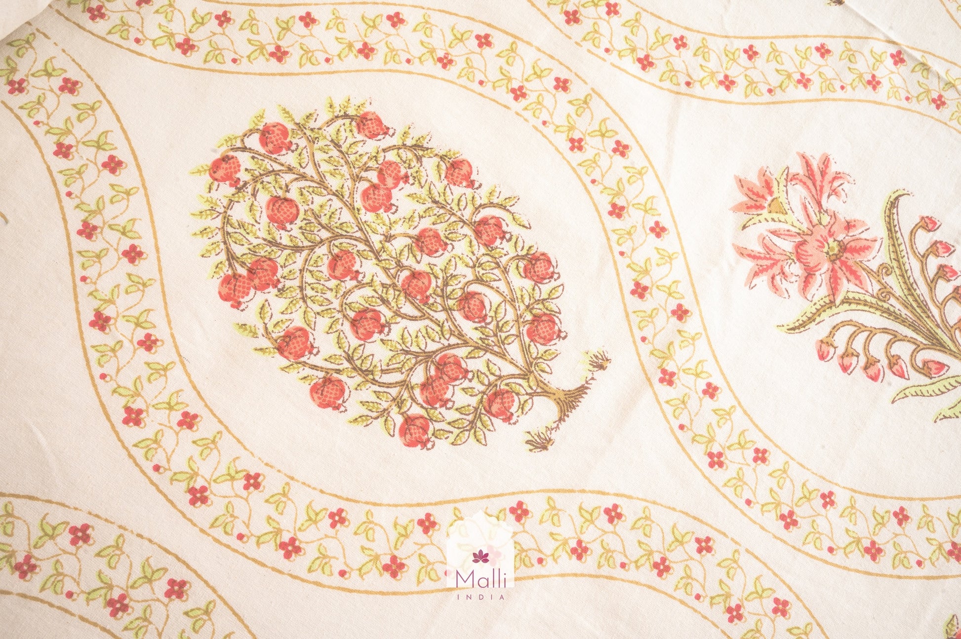 Anaar bageecha jaal - Pure cotton double bedsheet handblock printed