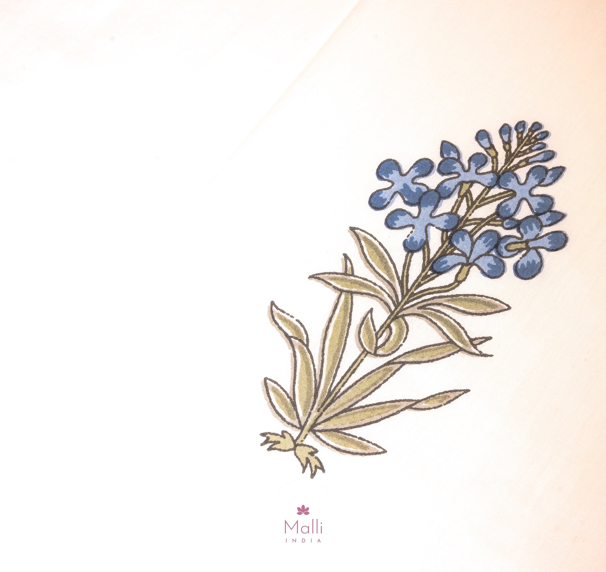 Blue madhumalti flowers buti - Pure cotton double bedsheet handblock printed (Super king)