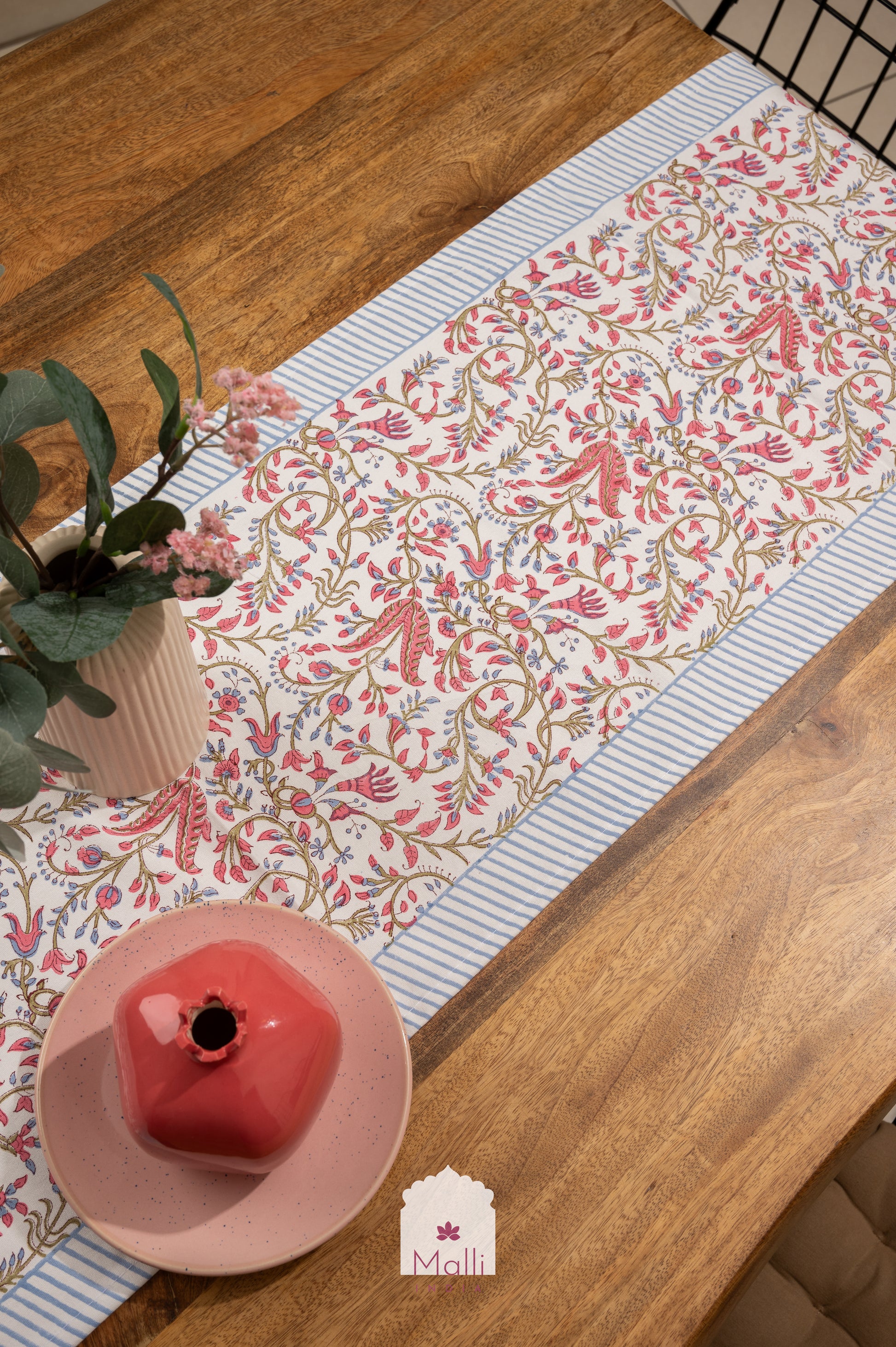 Laal baagh jaal with blue border - 6 seater runner in canvas cotton