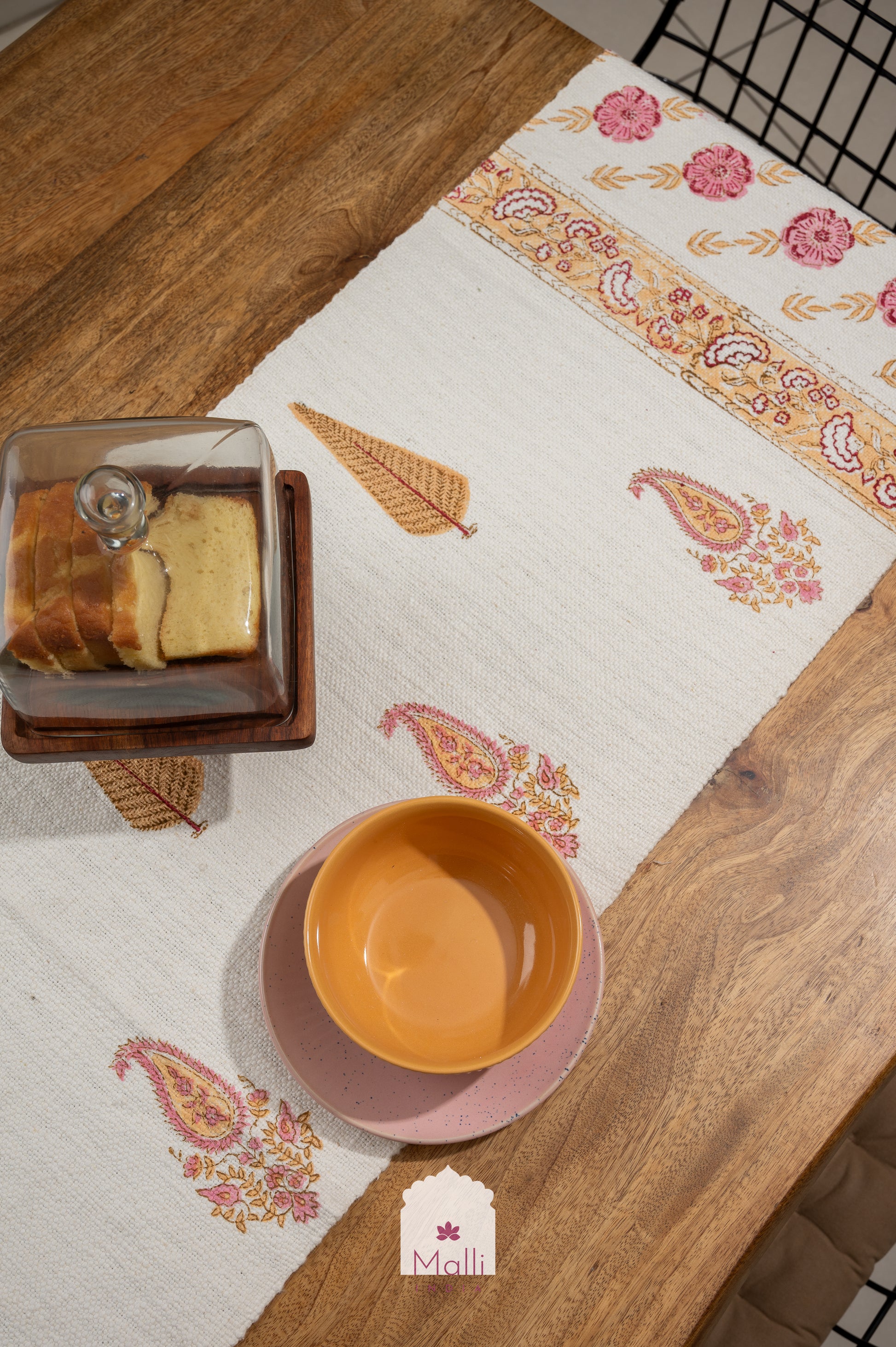 Yellow & pink kairi - 6 seater runner in slub cotton